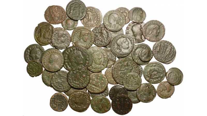 General: Lot of 50 Roman Imperial Coins (includes 1 ancient greek coin). The coins you purchase are the the ones in the picture. Includes a variety of types, including commemorative issues.