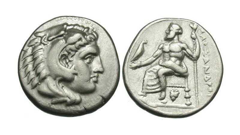 Obverse: Alexander the Great as Herakles facing right wearing the Nemean lion skin.