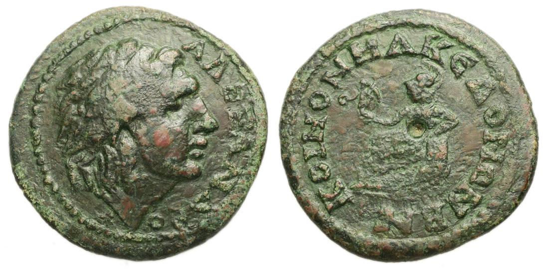 General: Very scarce. A beautiful specimen from Ancient Greece minted during the reign of the Roman Emperor Gordian III. Brilliant portrait of Alexander the Great. The Roman province of Macedonia was officially established in 146 BC, after the Roman general Quintus Caecilius Metellus defeated Andriscus of Macedon in 148 BC, and after the four client republics established by Rome in the region were dissolved. The province incorporated Epirus Vetus, Thessaly, and parts of Illyria and Thrace. The word "Koinon" means "common" and in this context is used to describe The Koinon of the Macedonians (Κοινόν Μακεδόνων) which was the commonwealth of all Macedonian communities at the time.