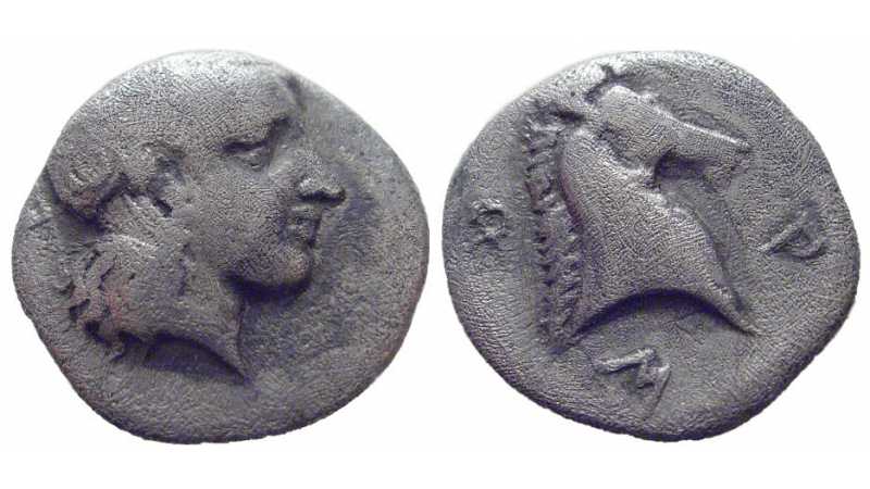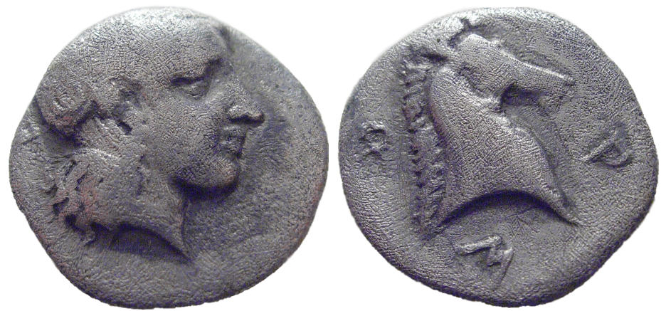 Reverse: Φ-A-P-Σ ("Phars"), Horse's head right