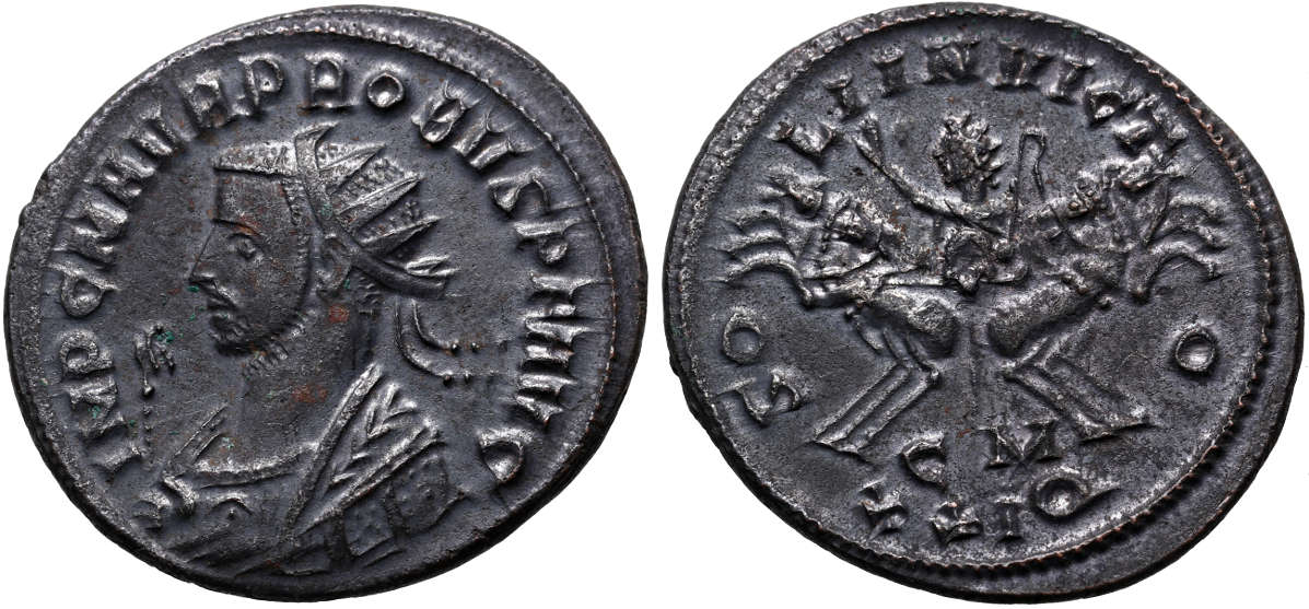 Obverse: IMP C M AVR PROBVS P F AVG, Radiate bust of Probus left in imperial mantle, holding sceptre surmounted by eagle
